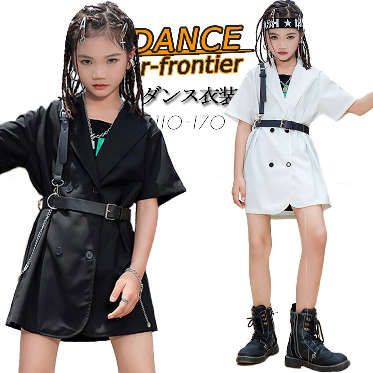 キッズダンス衣装 トップス パンツ 黒 白 ヒップホップ 半袖 団体 ダンス衣装 女の子 イベント 110 120 130 140 150 160 170