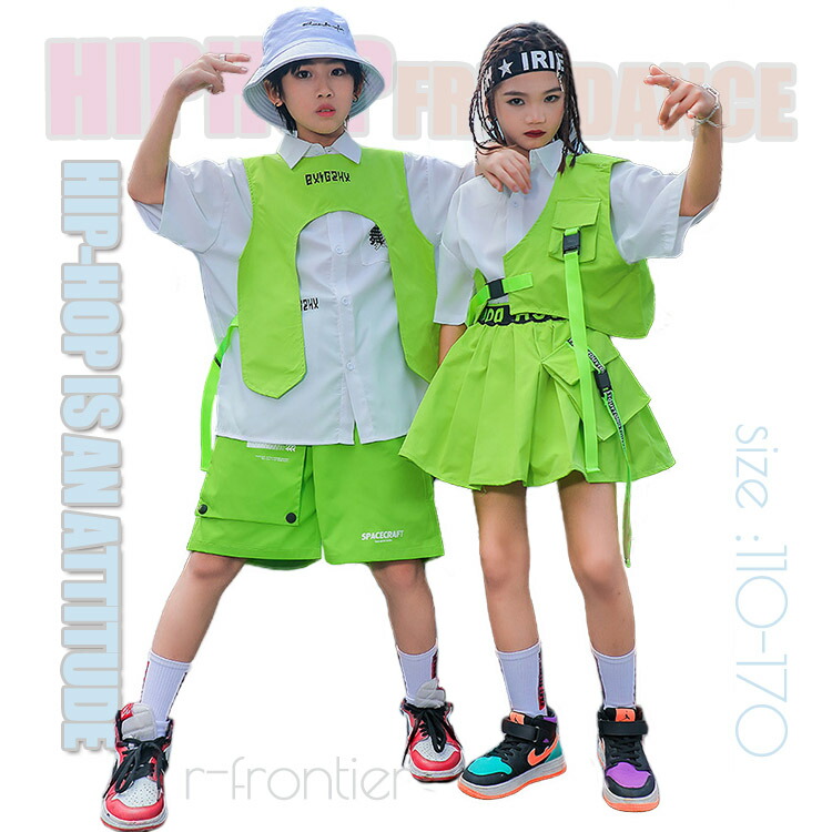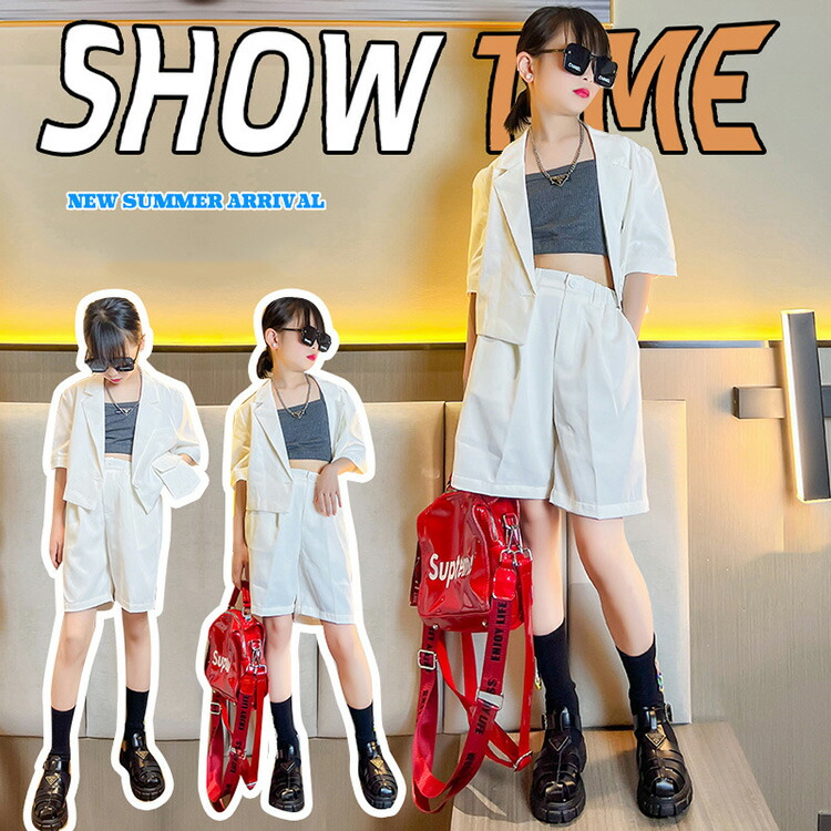 キッズ ダンス衣装 セットアップ ベスト シャツ パンツ ジャズダンス ガールズ 韓国 ヒップホップ hiphop ヒップホップ 演出服 応援団 練習着 110 170