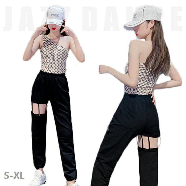 ダンス 衣装 セットアップ レーディス へそ出し トップス ベスト へそ出し カーゴパンツ かっこいい ジャズダンス 韓国 お洒落 おしゃれ 大きめ 団体 ヒップホップ