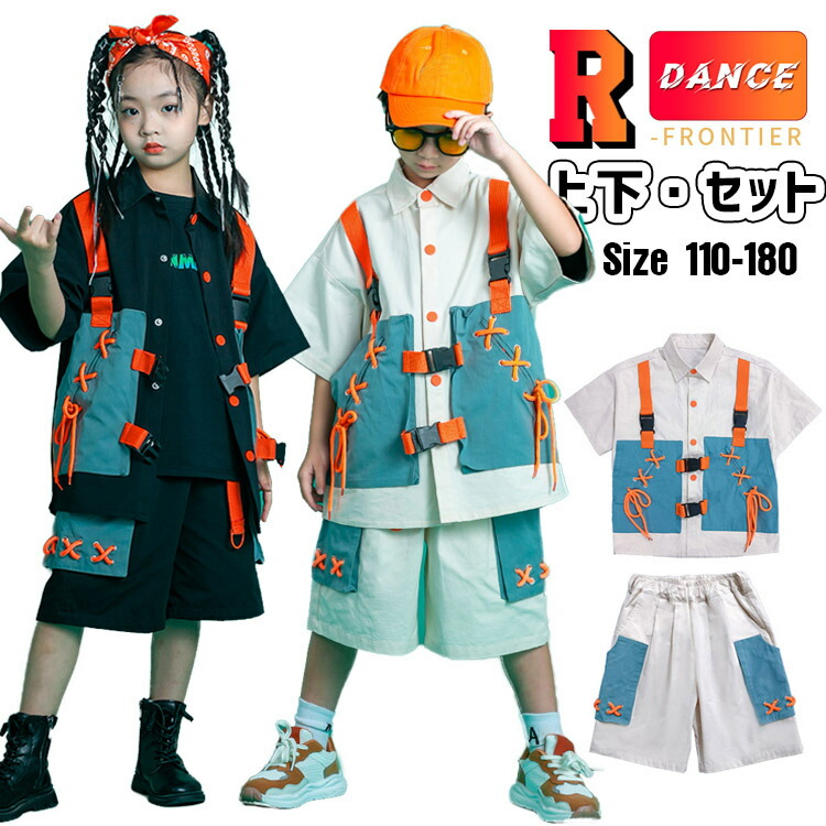 ダンス衣装 ヒップホップ キッズ かっこいい 女の子 男の子 セットアップ 白シャツ 派手 韓国 ジャズダンス 子供 半袖 団体 HIPHOP 男女兼用 イベント 発表会 110-180cm