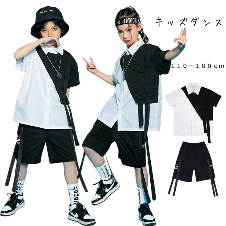 ダンス衣装 ヒップホップ キッズ かっこいい 女の子 男の子 セットアップ 白シャツ 派手 韓国 ジャズダンス 子供 半袖 団体 男女兼用 イベント 発表会 110-180