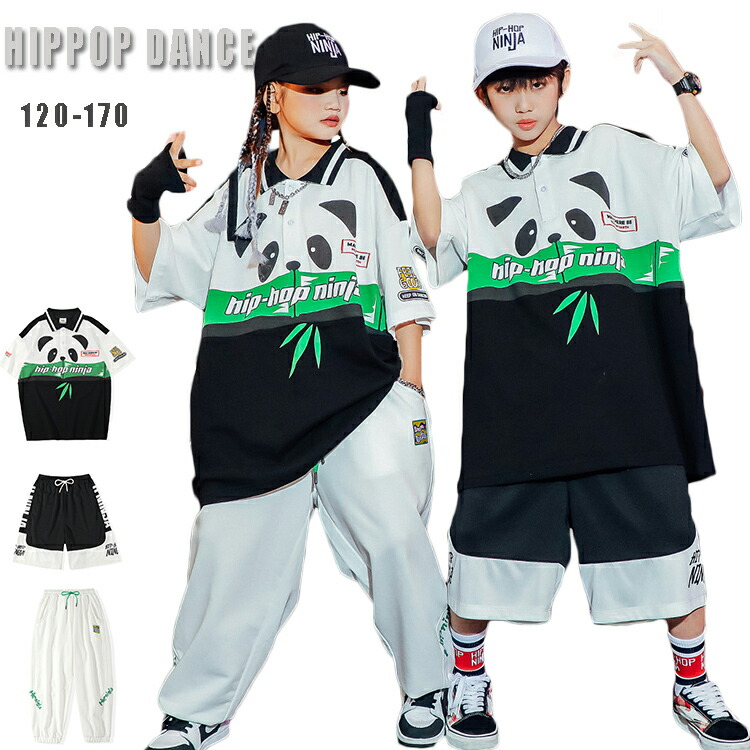 キッズダンス衣装 トップス パンツ 黒 白 ヒップホップ 半袖 団体 HIPHOP ダンス衣装 女の子 イベント 110 120 130 140 150 160 170
