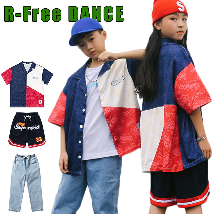 ダンス衣装 キッズ ヒップホップ かっこいい シャツ トップス ユニセックス 派手 韓国 子供 半袖 団体 HIPHOP ダンス衣装 男女兼用 イベント 110-180