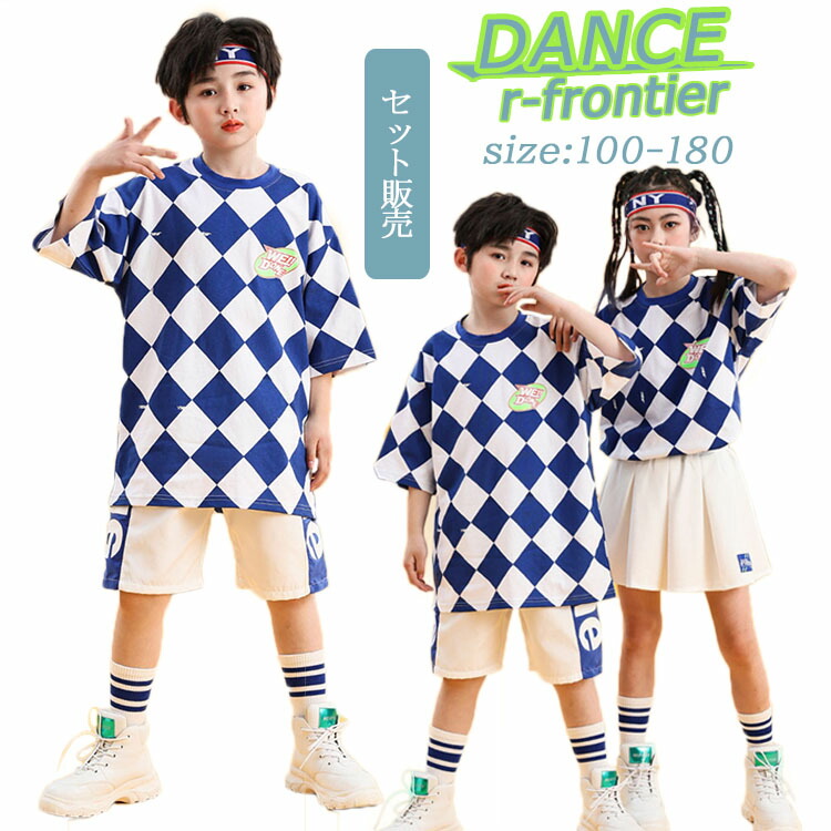 ダンス衣装 キッズ 上下セット 幾何柄 ひし形 トップス スカート ゆったり ジャズダンス ガールズ 韓国 ヒップホップ hiphop 演出服 応援団 練習着 100-180cm