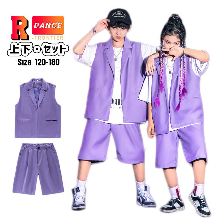ダンス衣装 スーツ キッズ 紫 セットアップ 女の子 男の子 ダンススーツ ヒップホップ 韓国 -衣装 かっこいい 演出服 子供 イベント 発表会 ステージ衣装 応援 120 1