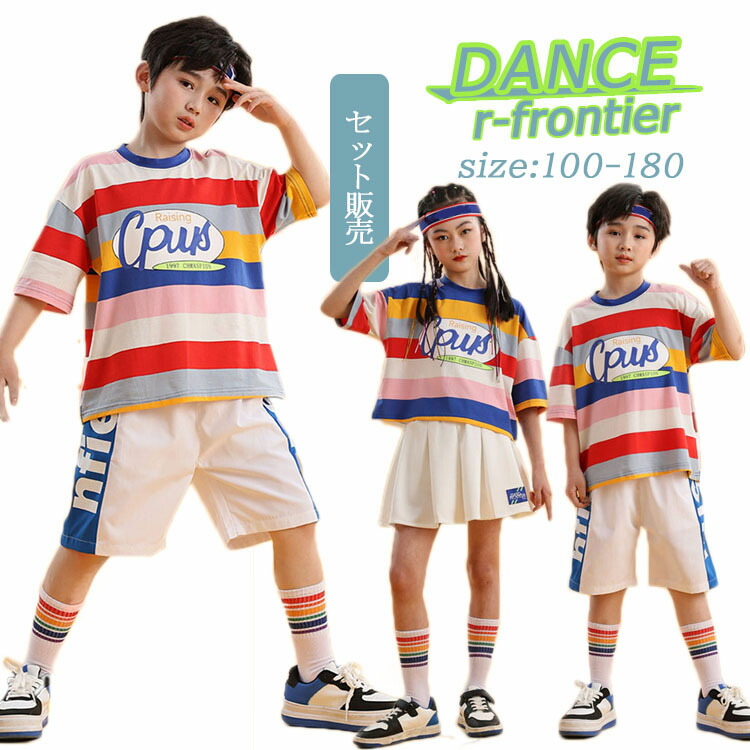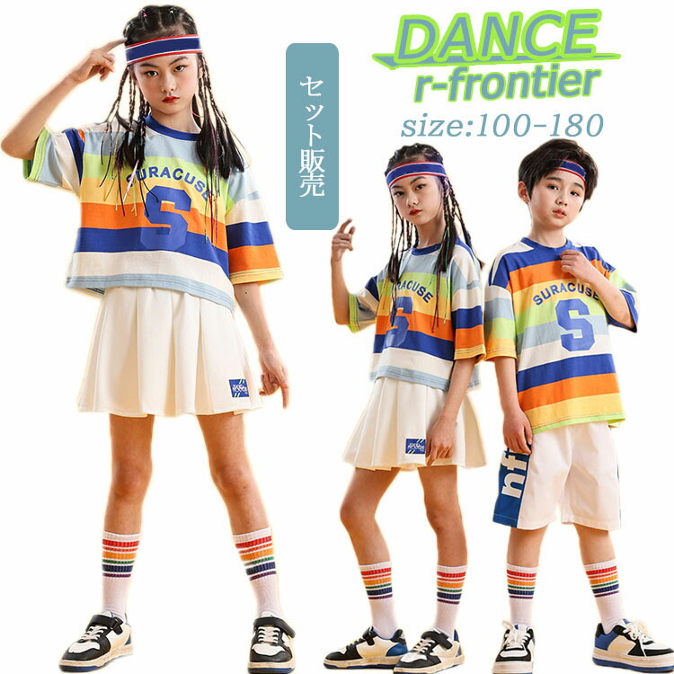 ダンス衣装 キッズ 上下セット 縞柄 トップス スカート ゆったり ジャズダンス ガールズ 韓国 ヒップホップ hiphop 演出服 応援団 練習着 100-180cm