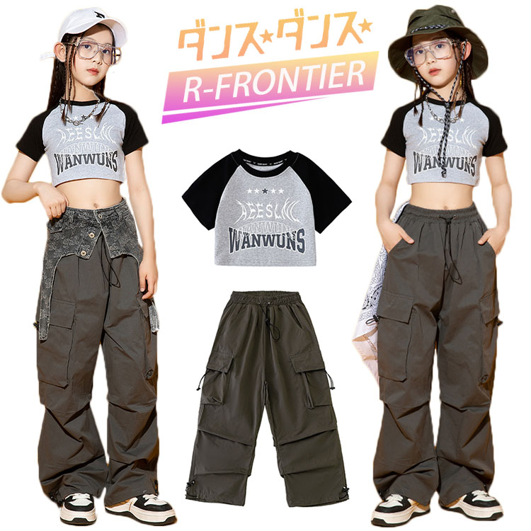 ダンス衣装 キッズ へそ出し トップス ヒップホップ セットアップ かっこいい tシャツ 女の子 男の子 ジャズダンス 韓国 ジュニア HIPHOP イベント 発表会 演出服 応援 110 180