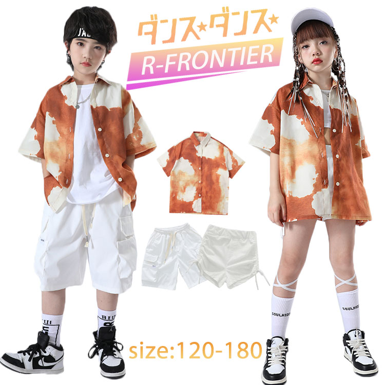 キッズダン 絞り染 目立つtシャツ k-pop ダンスセット ジャズダンス 韓国 ダンス 団体服 HIPHOP 発表会 応援団 120 130 140 150 160 170 180