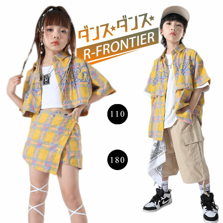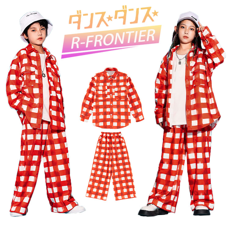 キッズダン 格子柄 目立つtシャツ k-pop ダンスセット ジャズダンス ダンスセット HIPHOP 発表会 応援団 120 130 140 150 160 170 180