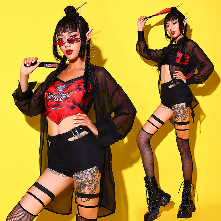 -衣装 赤 セットアップ ダンススーツ ヒップホップ ダンス衣装 キッズダンス衣装 黒 赤 セットアップ へそ出し ヒップホップ 160 120 130 140 150 170 大きいサイズ