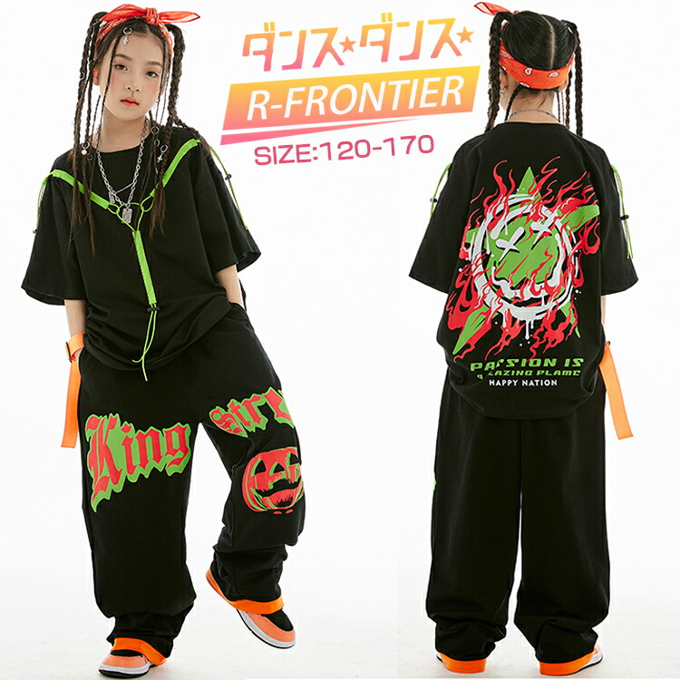 キッズ ダンス衣装 女の子 男の子 ゆったり シャツ パンツ ワイドパンツ ハロウィン かぼちゃ トップス 半袖 HIPHOP JAZZ イベント 110 120 130 140 150 160 17