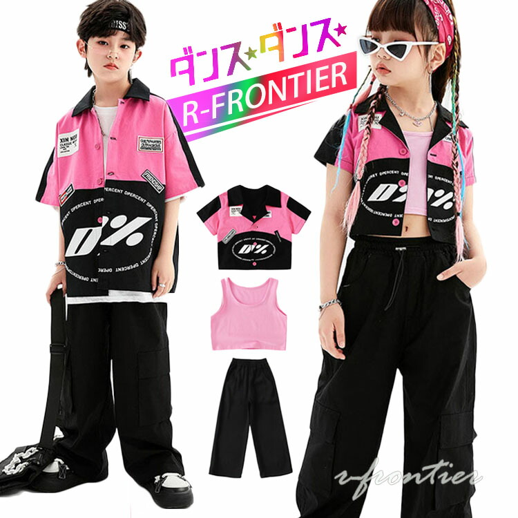ダンス衣装 キッズ へそ出し トップス ヒップホップ セットアップ かっこいい シャツ 女の子 男の子 ジャズダンス 韓国 ジュニア イベント 発表会 演出服 応援 110 180