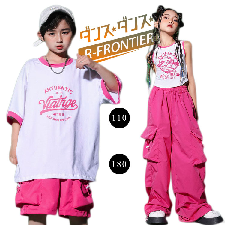 キッズダンス衣装 セットアップ へそ出し トップス 女の子 ローズパンツ ヒップホップ 韓国 かっこいい 男の子 演出服 ジュニア 子供 HIPHOP イベント 発表会 演出服 応援 110 180