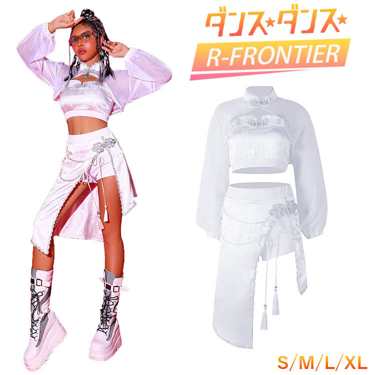 ダンス 衣装 k-pop 韓国 k-pop衣装 ダンススーツ ヒップホップ セットアップ トップス スカート セクシー 無地 白 ホワイト タンクトップ へそ出し sexy