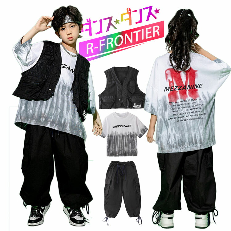 ダンス衣装 キッズ ヒップホップ セットアップ カーゴパンツ ベスト tシャツ ジャズダンス 男の子 女の子 ガールズ 韓国 hiphop 演出服 応援団 練習着 110 180