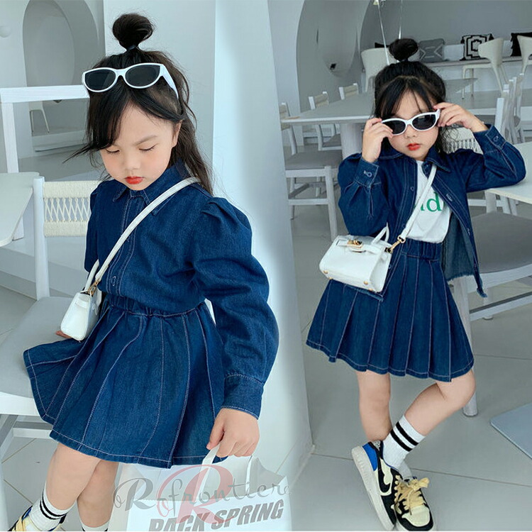 キッズダンス衣装 セットアップ デニム ジャケット スカート 2点セット 韓国 K-popスポーツ アウトドア 体操 ダンス 社交ダンス ウェア