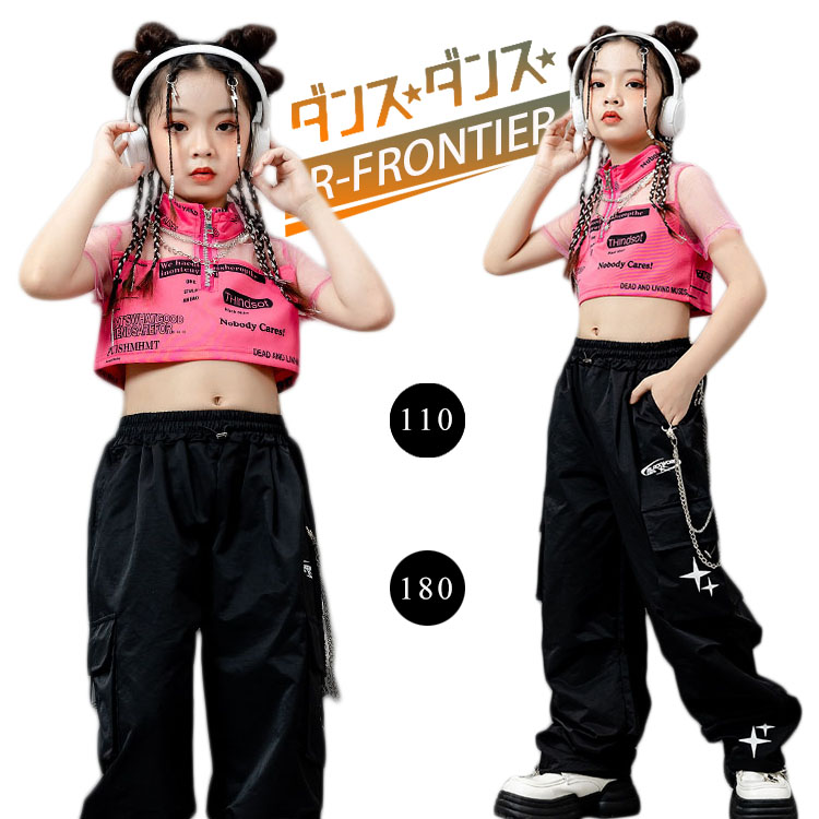 キッズダンス衣装 女の子 へそ出し トップス セットアップ ローズシャツ ヒップホップ 韓国 -衣装 かっこいい 演出服 ジュニア 子供 イベント 発表会 演出服 応援 110