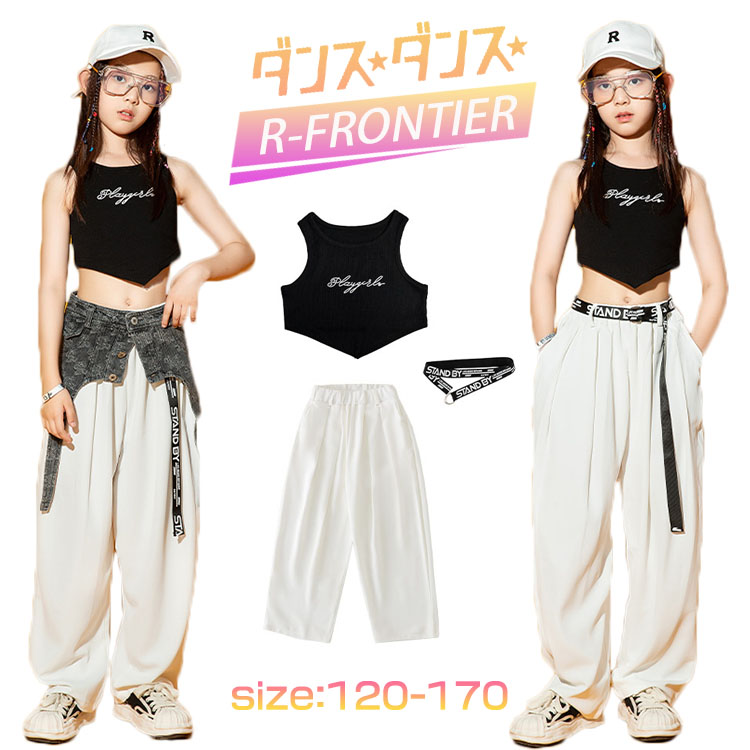 キッズ ダンス衣装 女の子 へそ出し トップス セットアップ 白シャツ 韓国 -衣装 かっこいい ヒップホップ 演出服 ジュニア 子供 イベント 発表会 演出服 応援 110 1