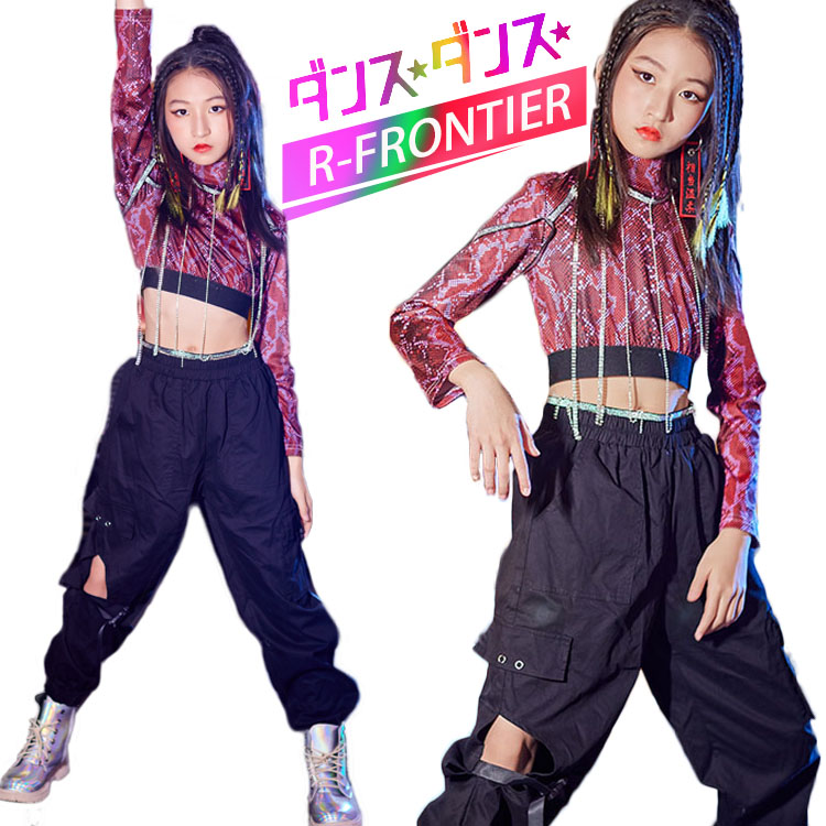 ダンス衣装 キッズ 上下セット へそ出し トップス 長ズボン ジャズダンス ガールズ 韓国 ヒップホップ 演出服 応援団 練習着 110-180