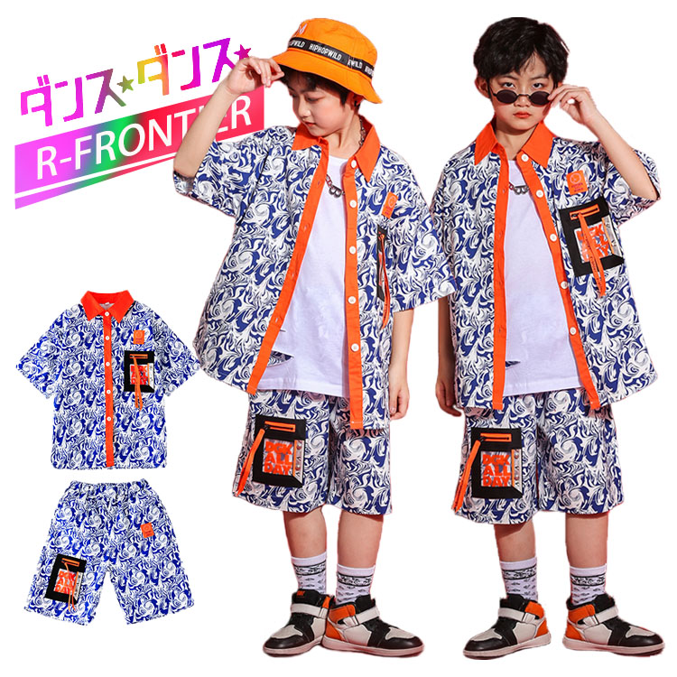 ダンス衣装 キッズ セットアップ シャツ 半袖 半ズボン 花柄 トップス ズボン 夏 HIPHOP 子供 男の子 女の子 ステージ衣装 団体服 発表会 演出服 韓国