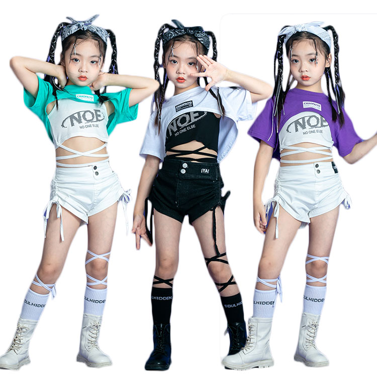 ダンス トップス へそ出し キッズ 女の子 白パンツ セットアップ かっこいい 韓国 -衣装 ヒップホップ 上下セット チアダンス 子供 イベント 発表会 演出服 団体服 110