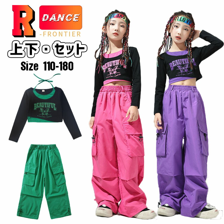 ダンス衣装 キッズ 上下セット へそ出し トップス 長ズボン ジャズダンス ガールズ 韓国 ヒップホップ hiphop 演出服 応援団 練習着 110-180cm