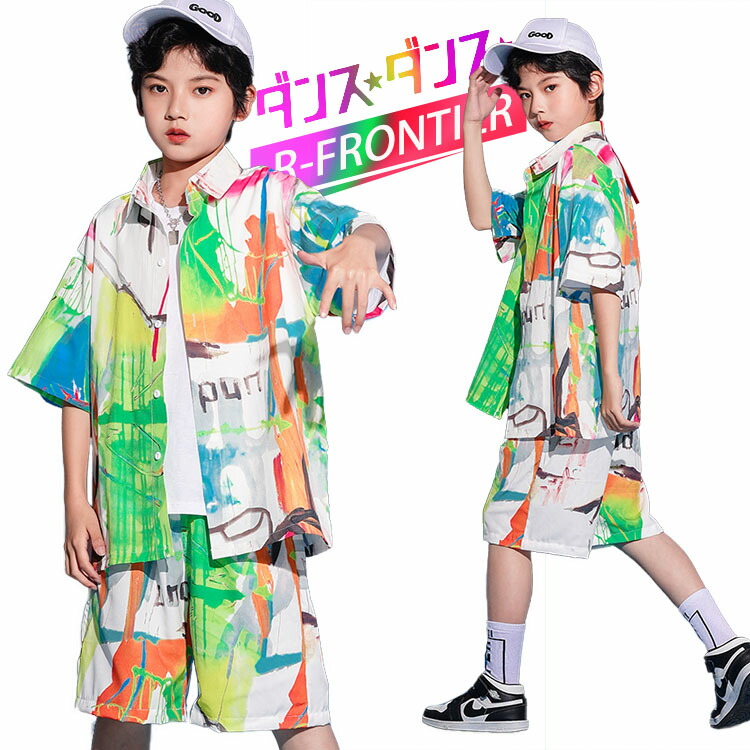 キッズ ダンス衣装 シャツ 半袖 半ズボン ヒップホップ 花柄 トップス ズボン 夏 子供 男の子 女の子 ステージ衣装 団体服 発表会 演出服 韓国