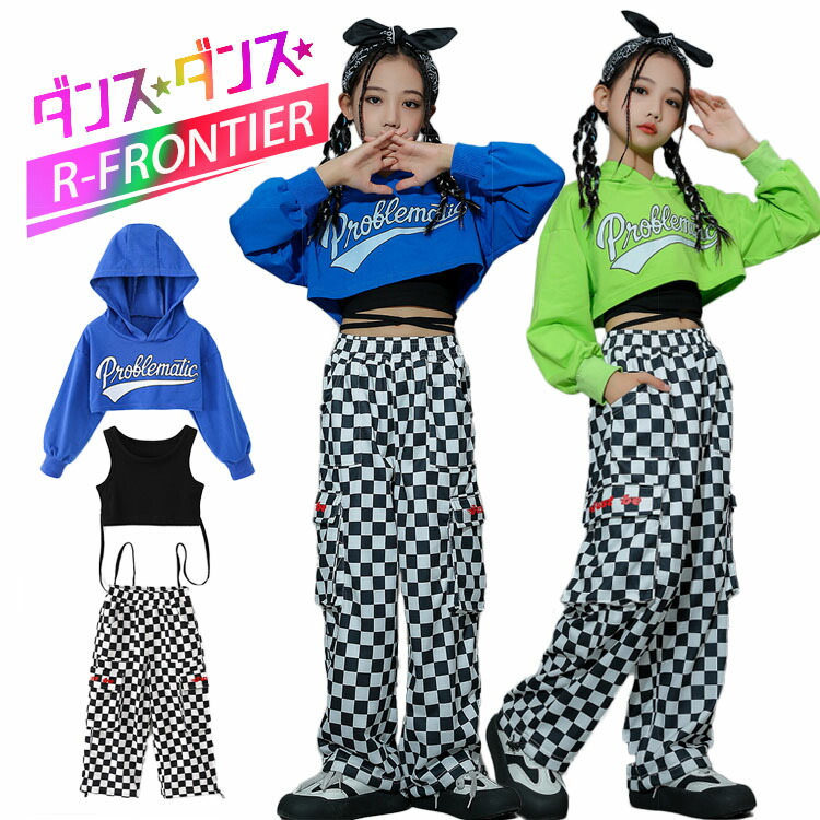 ダンス衣装 キッズ へそ出しトップス チェック柄 パンツ ダンスパンツ ゆったり ジャズダンス 女の子 ガールズ 韓国 hiphop セットアップ 演出服 応援団 練習着 110 180