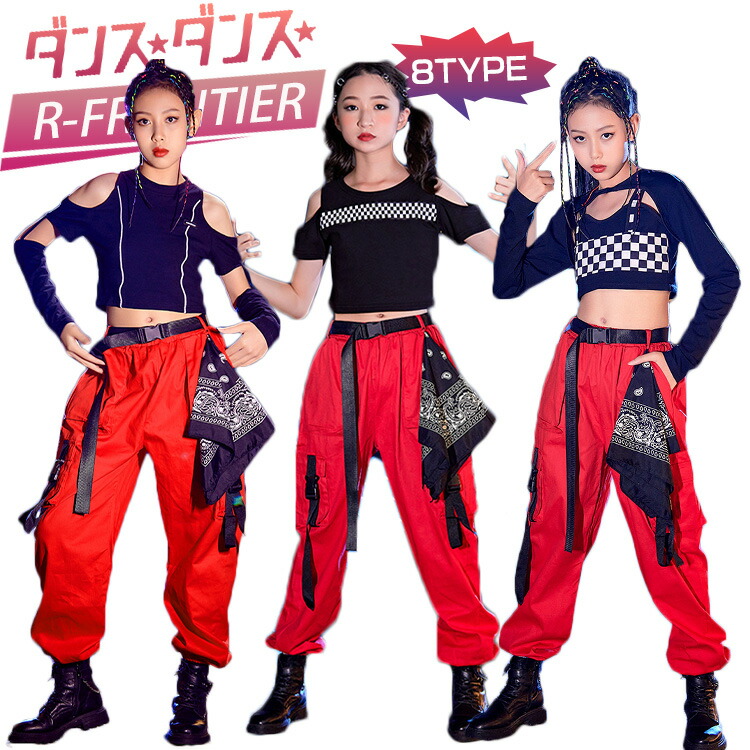 ダンス衣装 キッズ パンツ キッズ ジャケット 黒 赤 ダンスセット ジャズ ダンス 衣装 目立つ 女の子 110 120 130 140 150 160 170