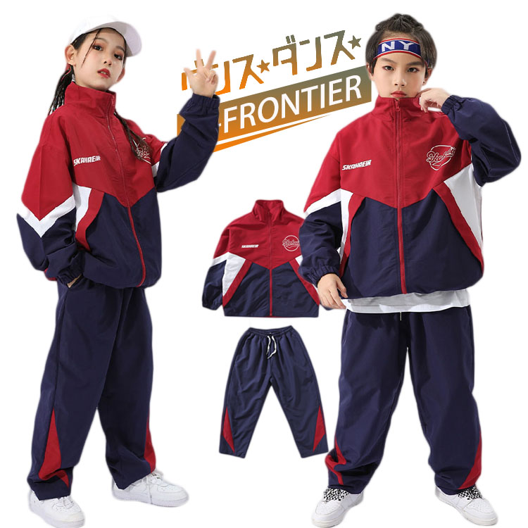 ダンス衣装 ヒップホップ キッズ 赤 セットアップ 女の子 男の子 かっこいい 長袖 パーカー 韓国 ジャズダンス 団体 演出服 応援団 イベント 110 120 130 140 150