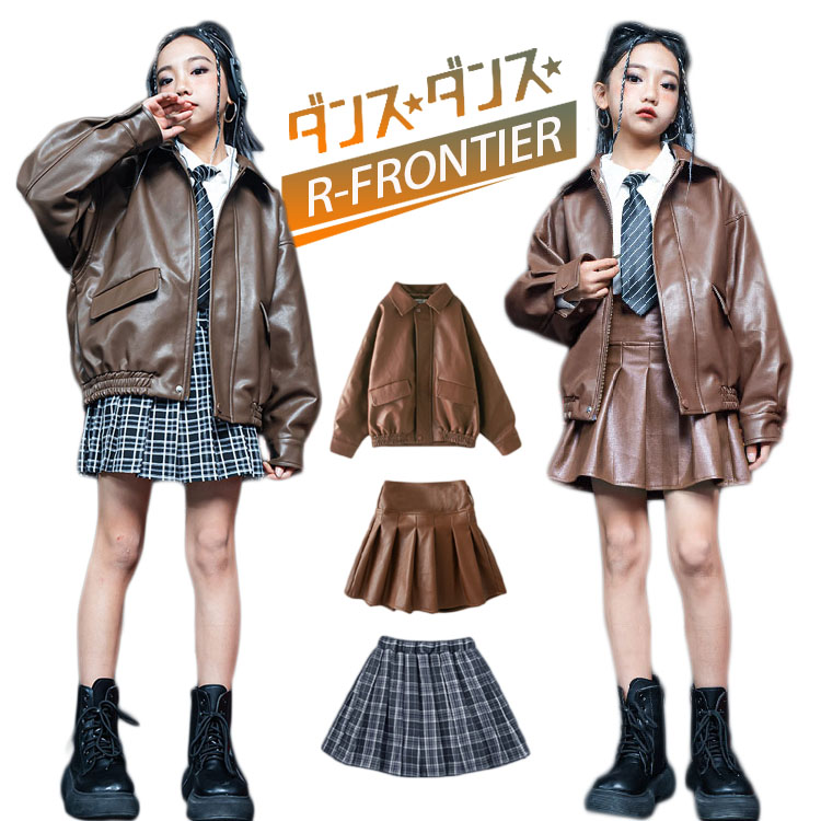 キッズ ダンス衣装 女の子 かっこいい セットアップ チェック柄スカート レザージャケット スカート ヒップホップ 韓国 -衣装 ジャズダンス 演出服 イベント 発表会 応援 110 180