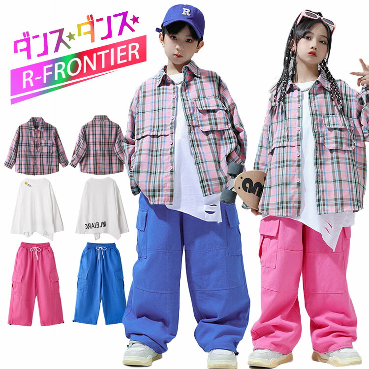 ダンス衣装 キッズ チェック柄シャツ カーゴパンツ ゆったり 男の子 女の子 ガールズ 韓国 hiphop セットアップ 演出服 応援団 練習着 110 180