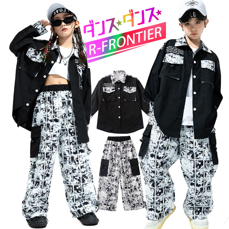 ダンス衣装 キッズ セットアップ 長袖 シャツ ダンスパンツ ヒップホップ ジャズダンス 男の子 女の子 ガールズ カッコイイ 演出服 応援団 ステージ衣装 110-180