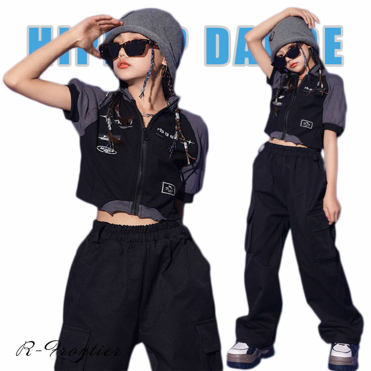 キッズ へそ出し トップス ダンス衣装 女の子 セットアップ カーゴパンツ ヒップホップ かっこいい 韓国 k-pop衣装 ジュニア 子供 HIPHOP 小学生 中学生 イベント 110-180cm