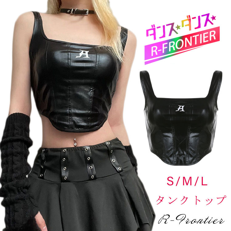 ダンス トップス へそ出し レディース 韓国 -衣装 レザー タンクトップ セクシー かっこいい 演出服 シルバー タンクトップ