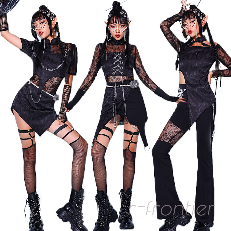 ダンス 衣装 セットアップ - レディース へそ出し トップス キュッロト パンツ メッシュ 透け感 韓国 ジャズダンス ヒップホップ ダンスウェア 練習 舞台用