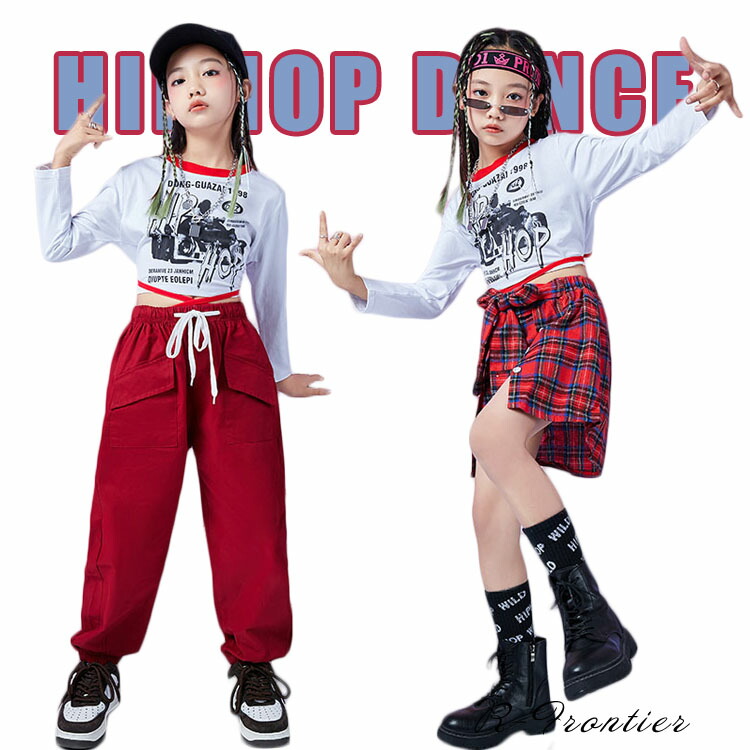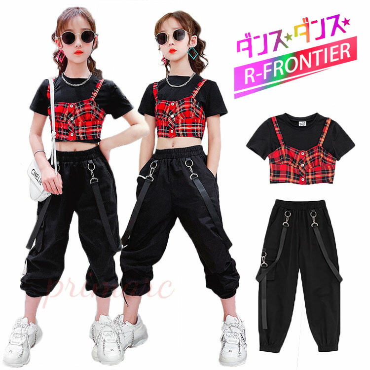 ダンス衣装 ヒップホップ キッズ 赤パンツ チェック柄 スカート 女の子 韓国 k-pop衣装 ジャズダンス カーゴパンツ ワイドパンツ 応援団 チア 演出服 発表会 110-180cm