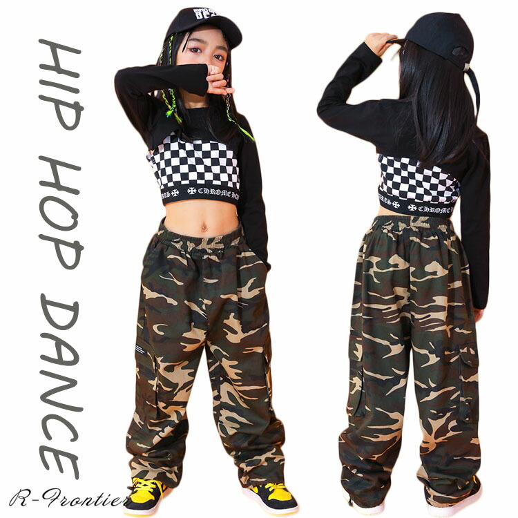 キッズ ダンス 衣装 セットアップ ヒップホップ 迷彩 ベスト カーゴパンツ ユニセックス カッコイイ ヒップホップ 長ズボン HIPHOP 子供 女の子 ステージ衣装 団体服 発表会 演出服 韓国