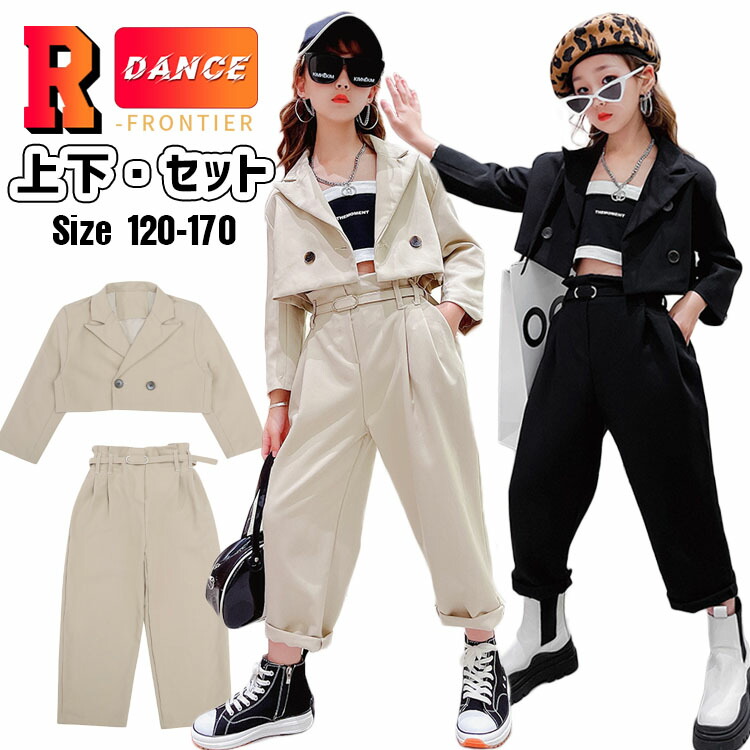 ジャズダンス 衣装 ダンス衣装キッズ ヒップホップ k-pop 韓国 k-pop 衣装 ダンス スーツ 大きめ セットアップ トップス パンツ かっこいい 120 130 140 150 160 17