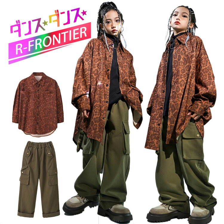 キッズ ダンス 衣装 ヒップホップ カーゴパンツ ヒョウ柄 シャツ かっこいい ダンス衣装 ジャズダンス 女の子 ガールズ 韓国 hiphop セットアップ 演出服 応援団 練習着 110 180
