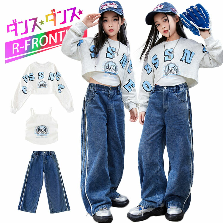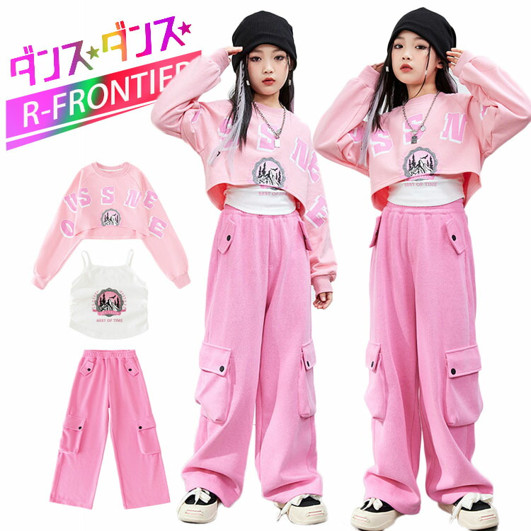 ダンス衣装 キッズ セットアップ ヒップホップ 演出服 トップス ワイドパンツ ヒップホップ 長ズボン 子供 女の子 ステージ衣装 団体服 発表会 演出服 韓国