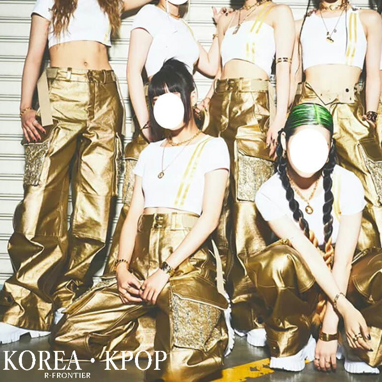 韓国 K-POP 大人衣装 レディース ホワイト ゴールド ショート丈 ロングパンツ チーム へそ出し ベスト