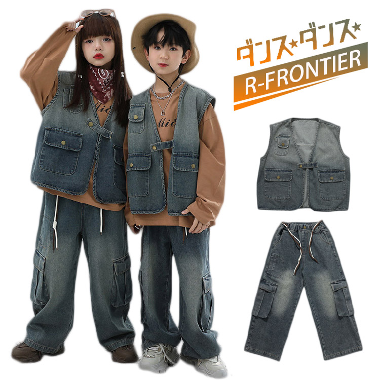 キッズ ダンス衣装 セットアップ デニムベスト ヒップホップ 女の子 男の子 デニムパンツ 派手 韓国 -衣装 子供服 ジャズダンス ステージ衣装 練習着 おしゃれ イベント 110-180