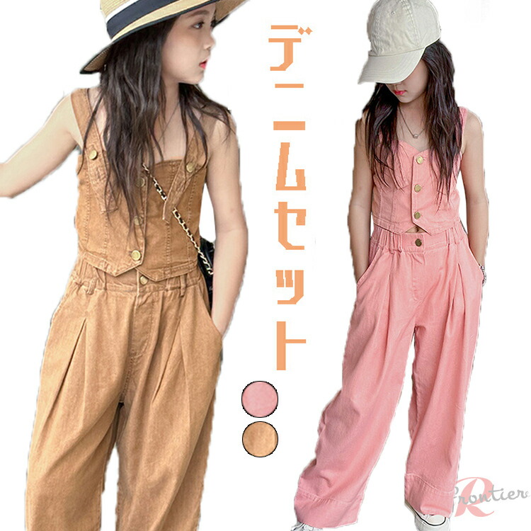 ダンス衣装 ヒップホップ キッズ 茶色 デニムパンツ セットアップ 女の子 ジャズダンス かっこいい 絞り染め 韓国 -衣装 団体 イベント 120 130 140 150 16
