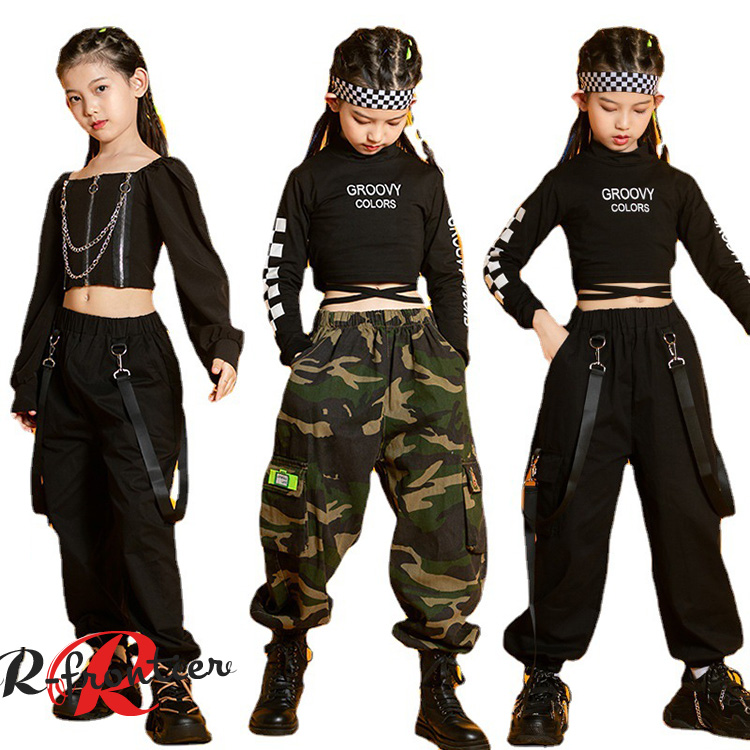 ダンス衣装 ヒップホップ キッズ 茶色 デニムパンツ セットアップ 女の子 ジャズダンス かっこいい 絞り染め 韓国 k-pop衣装 団体 HIPHOP イベント 120 130 140 150 16