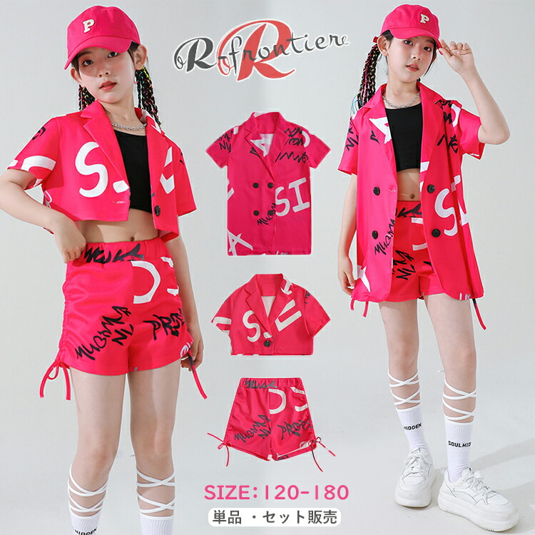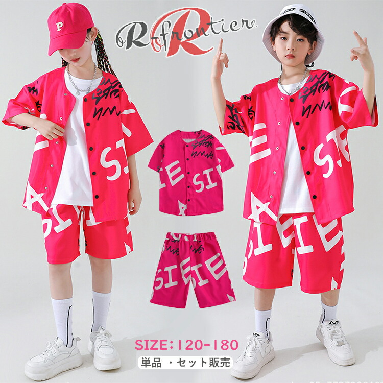 ダンス衣装 ヒップホップ キッズ セットアップ 女の子 かっこいい 男の子 半袖 ローズシャツ 韓国 ジャズダンス 団体 演出服 応援団 イベント 110 120 130 140 150