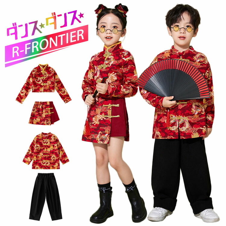 ダンス トップス へそ出し キッズ 女の子 かっこいい 赤ジャケット スカート 黒パンツ 長袖 ヒップホップ 韓国 -衣装 ジャズダンス 団体 演出服 応援団 イベント110-1