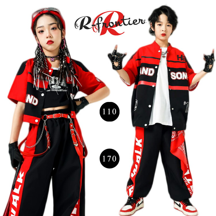 ダンス衣装 ヒップホップ キッズ 赤 黒 セットアップ 女の子 男の子 かっこいい 半袖 赤ジャケット 韓国 ジャズダンス 団体 HIPHOP 演出服 応援団 イベント 110 120 130 140