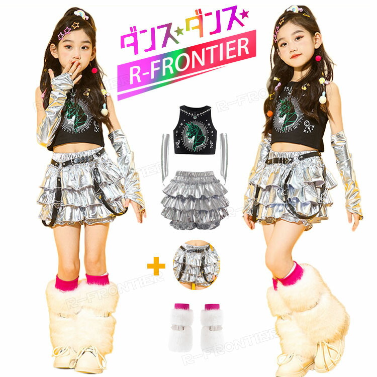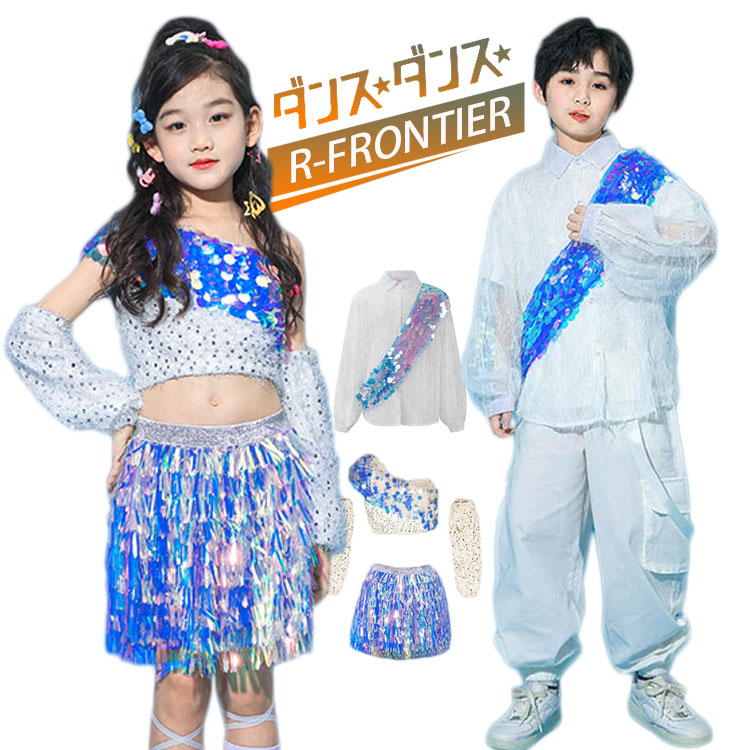ダンス衣装 ヒップホップ キッズ 白パンツ 女の子 男の子 かっこいい セットアップ スパンコール ジャズダンス 韓国 -衣装 スカート 子供 イベント発表会 演出服 応援 11