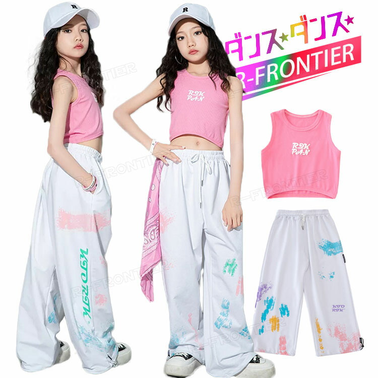 ダンス衣装 キッズ 女の子 セットアップ へそ出し トップス ダンスパンツ ゆったり ヒップホップ 団体 ダンス衣装 女の子 イベント 110 120 130 140 150 160 1